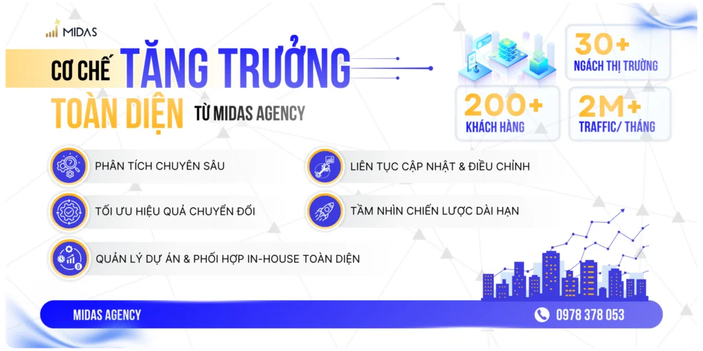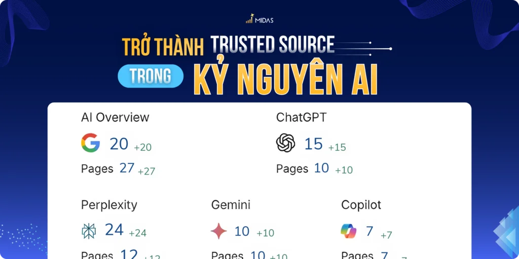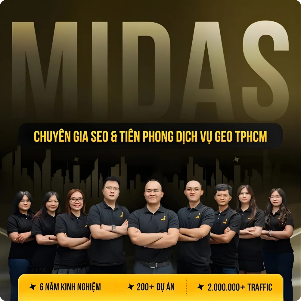 MIDAS AGENCY giúp doanh nghiệp không chỉ xếp hạng cao trên Google, mà còn được trích dẫn bởi các công cụ AI hàng đầu như ChatGPT, Gemini và Perplexity.