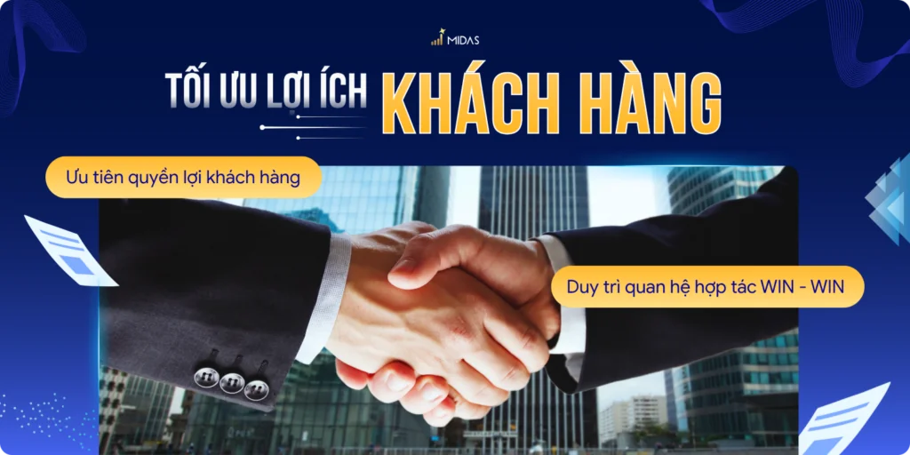 Chúng tôi ưu tiên quyền lợi của khách hàng và đối tác như chính quyền lợi của mình. Thay vì những giao dịch đơn thuần, Midas hướng tới việc thiết lập mối quan hệ hợp tác dài hạn dựa trên sự tin tưởng. Một dự án chỉ được coi là thành công khi cả hai bên cùng đạt được giá trị bền vững và phát triển song hành.